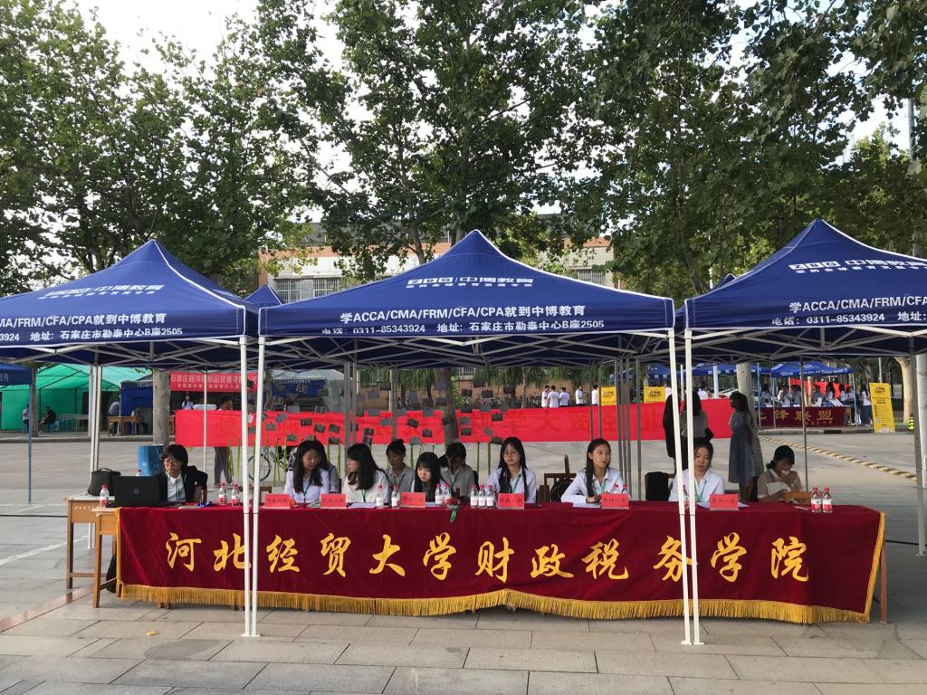 8月23、24日,yl6809永利于yl6809永利图书馆前广场摆摊迎新,财政税务公司党委副书记刘贵来、新生班辅导员、员工会全体成员参加。