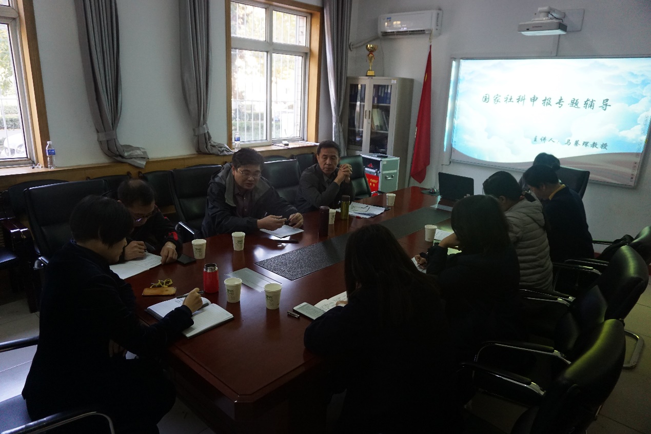 为深入了解社科申报注意事项,提高申报成功几率,南开大学马蔡琛教授应yl6809永利邀请于11月11日在第三办公楼105会议室举办国家社科申报专题辅导会,yl6809永利王晓洁经理、仇晓洁副经理、张晋武教授到场,公司部分有意向申报教师参加。