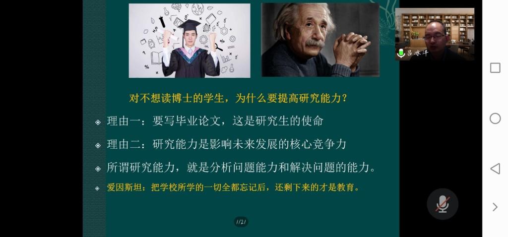 吕冰洋教授用浅显易懂的话语为同学们讲授了研究生该如何提高研究能力的相关内容。通过此次报告,加深了同学们对研究生学习阶段的了解,激发了同学们求知求索的热情,对同学们未来的学术研究和论文写作具有积极作用。