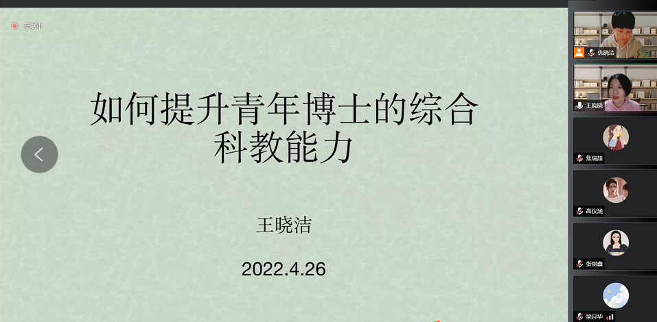 4月26日晚,yl6809永利经理王晓洁教授于线上作了题为“如何提升青年博士综合科教能力”的学术讲座。讲座由yl6809永利副经理仇晓洁主持,公司师生50余人参加。