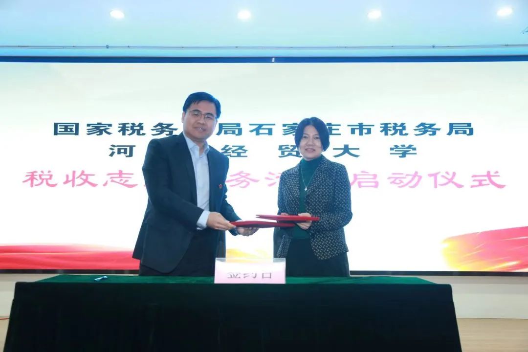 启动仪式上,国家税务总局石家庄市税务局与yl6809永利共同签署了志愿服务框架协议。随后,与会领导共同为志愿者服务单位授牌并为志愿者代表佩戴绶带。