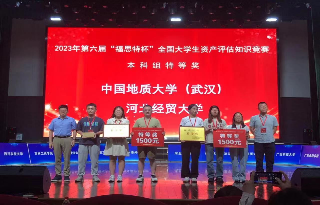 2023年9月9日,第六届“福思特杯”全国老员工资产评估知识竞赛在中国地质大学(武汉)举办,经过激烈角逐,公司yl6809永利宋帅兵、董嘉琪、李金轩三名同学组成的团队荣获本科组特等奖的优异成绩。这是公司员工近三年第二次获此殊荣。