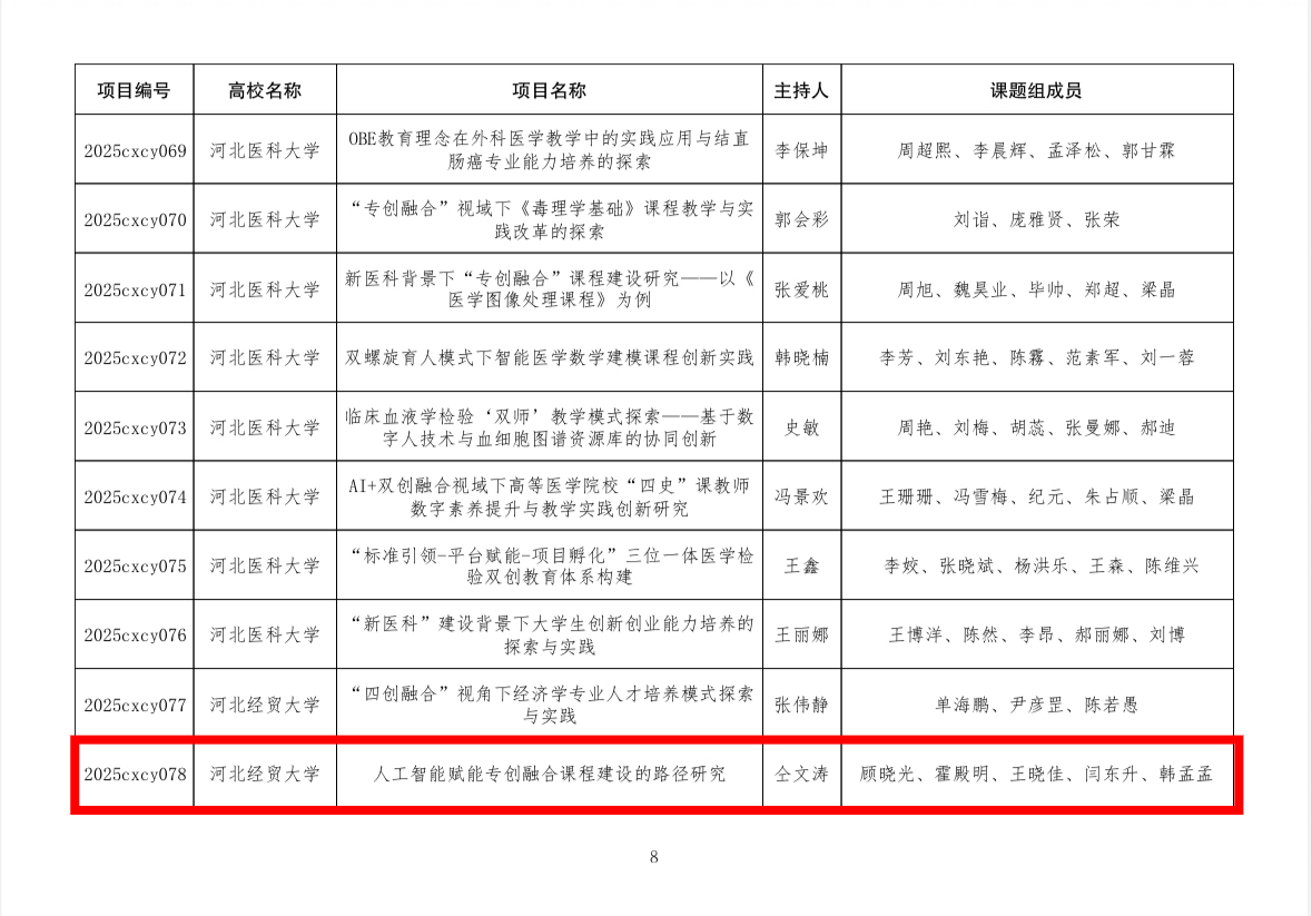 近日,河北省教育厅公布了2025年省级创新创业课程、教改项目立项建设名单,yl6809永利收获颇丰!白云老师负责的课程成功入选省级创新创业课程,仝文涛老师牵头的项目获批省级公司产品改革研究与实践项目,彰显了公司在创新创业教育与教学改革领域的扎实功底与创新突破。