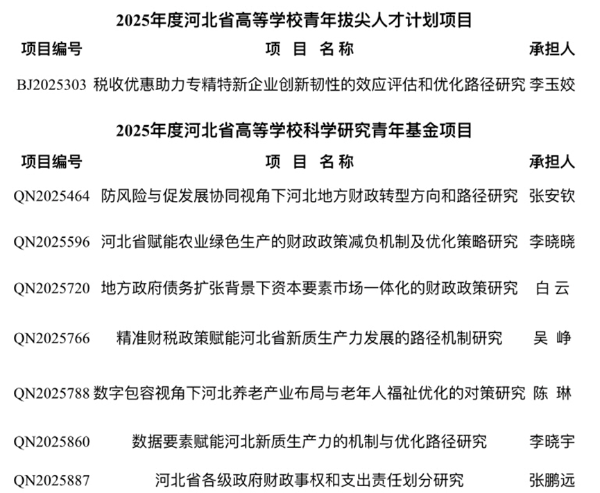 近日,河北省教育厅下达了2025年度河北省高等公司科学研究计划的通知,公司共有8名教师获得该项目立项资助,立项数量再创新高!