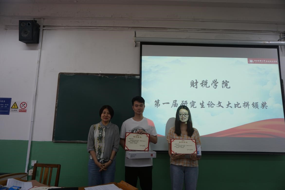 仇晓洁首先宣读了获奖员工名单,经理、副经理分别为获奖员工颁发获奖证书和奖品。本次活动旨在提升研究生的学术研究意识、论文写作能力以及整体的学术水平。活动历时三个多月,吸引了全体研究生的积极参与,经过专业教师评审,最终财政学、税务和资产评估三个专业共计22名研究生的论文获奖,其中一等奖3项、二等奖6项、三等奖13项。
