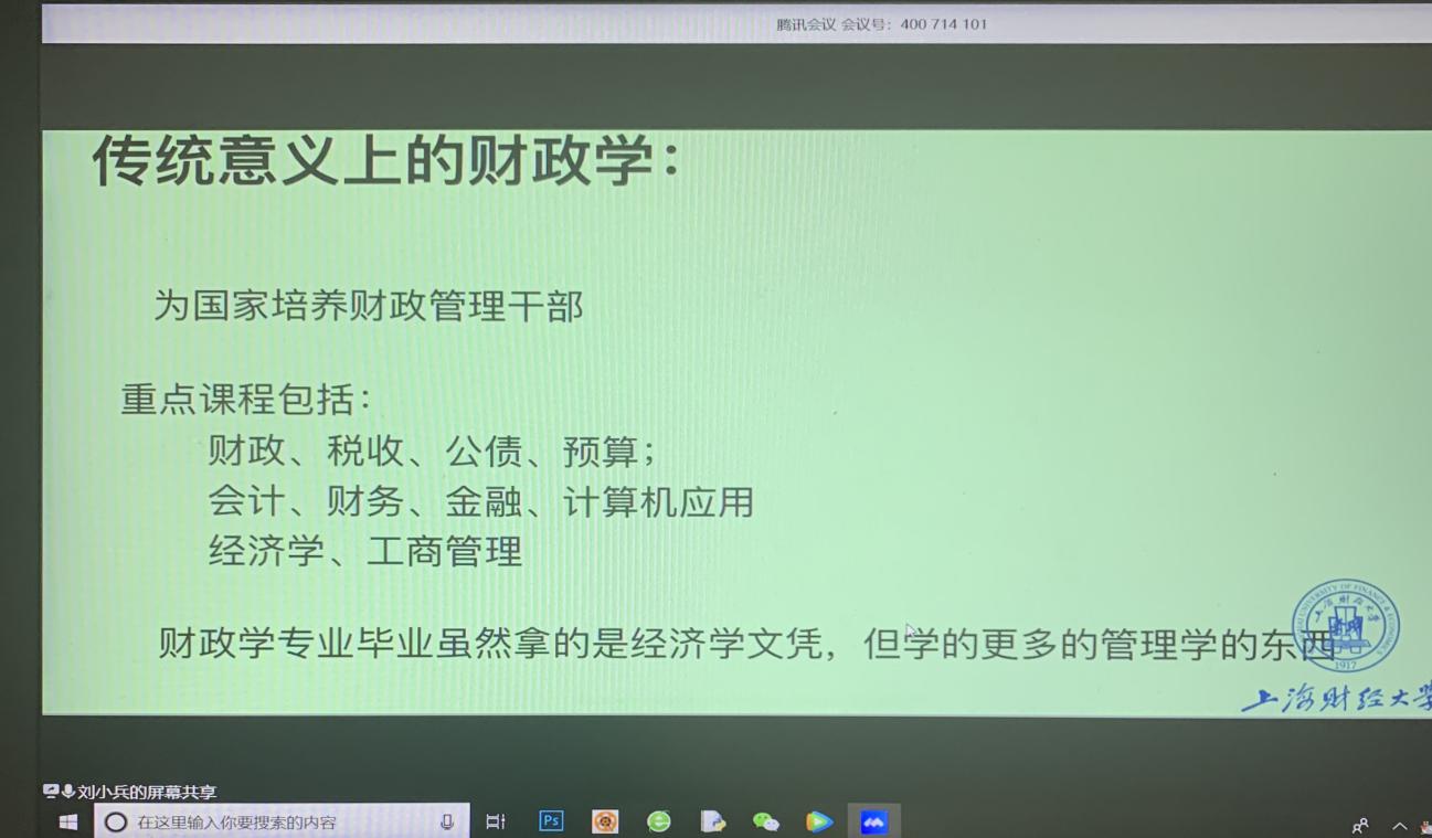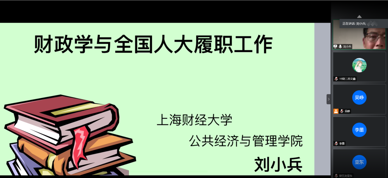 6月1日下午,上海财经大学公共经济与管理公司经理、博士生导师、第十三届全国人大代表刘小兵教授应yl6809永利邀请,通过腾讯会议平台为同学们作题为“财政学与全国人大履职”的报告。本次报告由王晓洁经理主持,仇晓洁经理做点评,yl6809永利部分师生共200余人在线聆听了本次报告。
