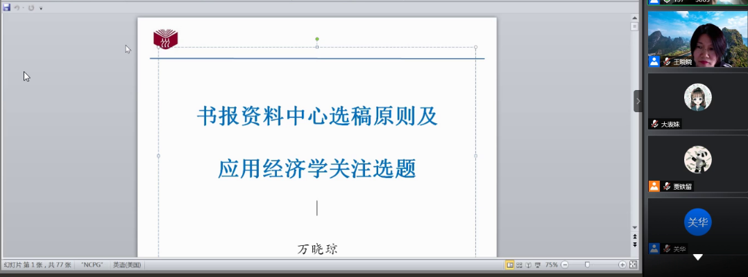 2020年11月29日下午,财税公司与经济与管理编辑部共同邀请中国人民大学书报资料中心,经济编辑部应用经济学执行主编万晓琼教授,做题为“书报资料中心选稿原则及应用经济学关注选题”的学术讲座。财税公司经理王晓洁主持并出席了本次讲座,yl6809永利部分师生300余人参与此讲座并参与热点话题探讨。