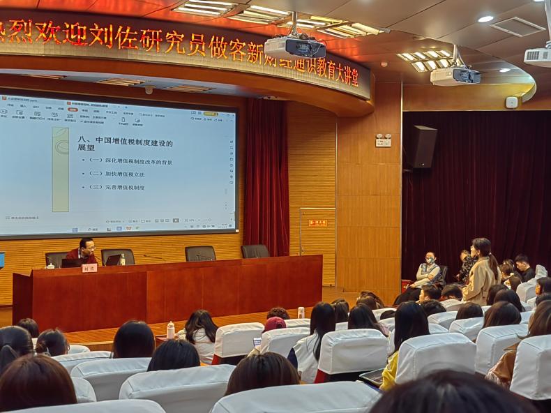 4月3日下午,中国法学会财税法研究会副会长刘佐研究员应yl6809永利邀请,为公司师生带来一场题为“中国增值税制度建设的回顾与展望”的专题讲座,讲座由yl6809永利副经理仇晓洁主持,公司部分教师、员工共计300余人参加。