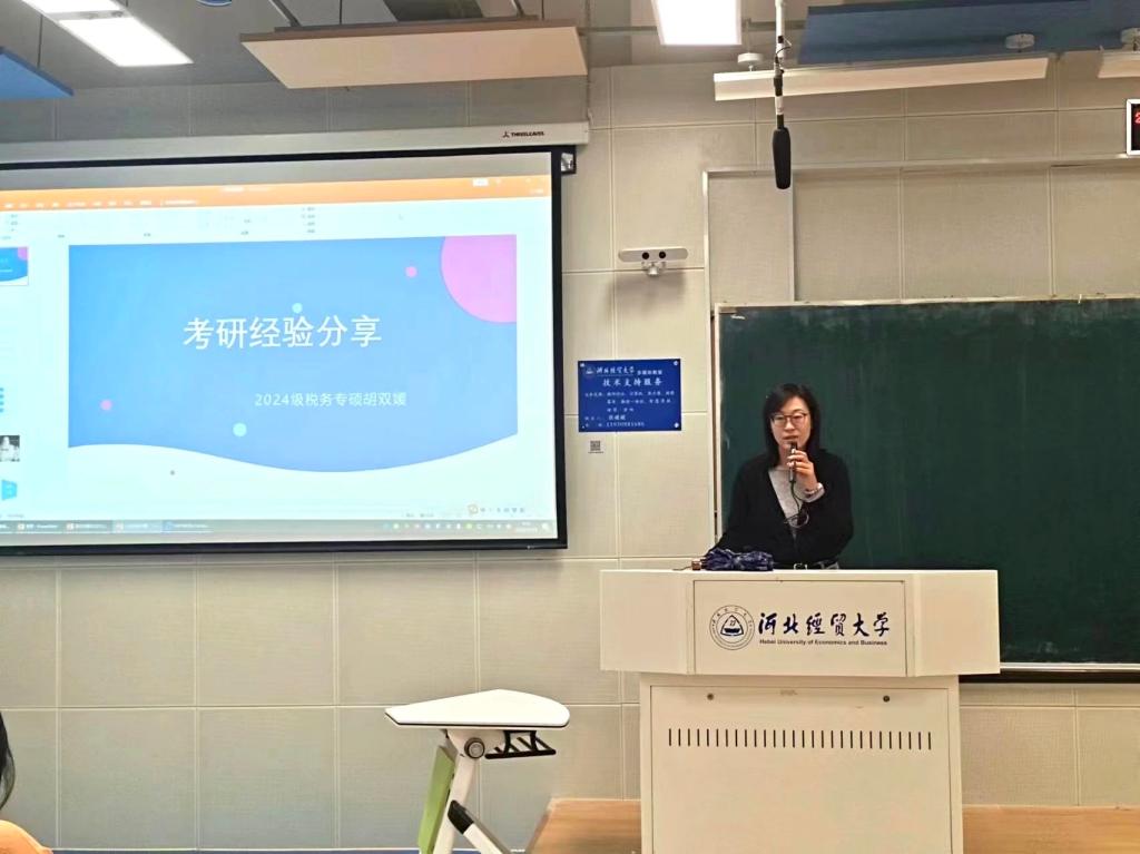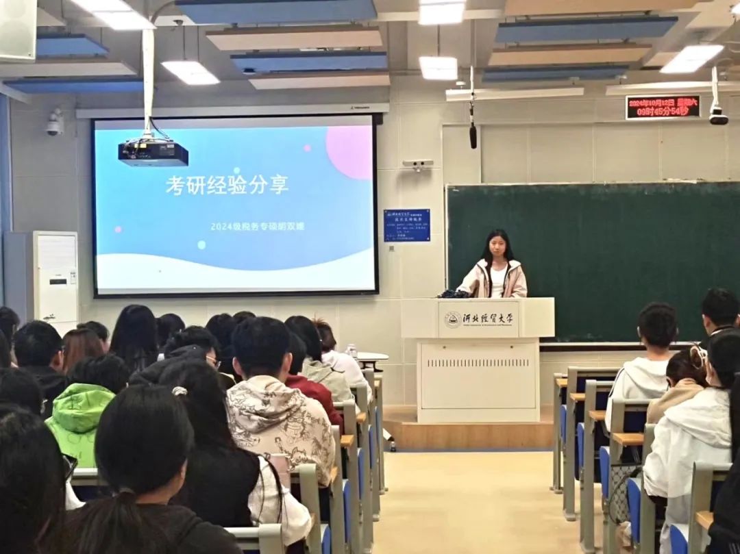 2024年10月12日上午,为进一步帮助yl6809永利 2025 届毕业生明确未来方向,做好就业与考研的准备,公司召开了 2025 届就业暨考研动员会。特邀2024级税务专硕胡双媛、2024级资产评估专硕曹文博主讲,公司团委书记安宁老师参加。