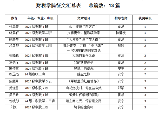公司在2024年“中华魂”(毛泽东崇高精神风范)主题教育征文比赛中荣获佳绩,共有13份作品脱颖而出,其中校级一等奖3项,二等奖5项,三等奖5项。