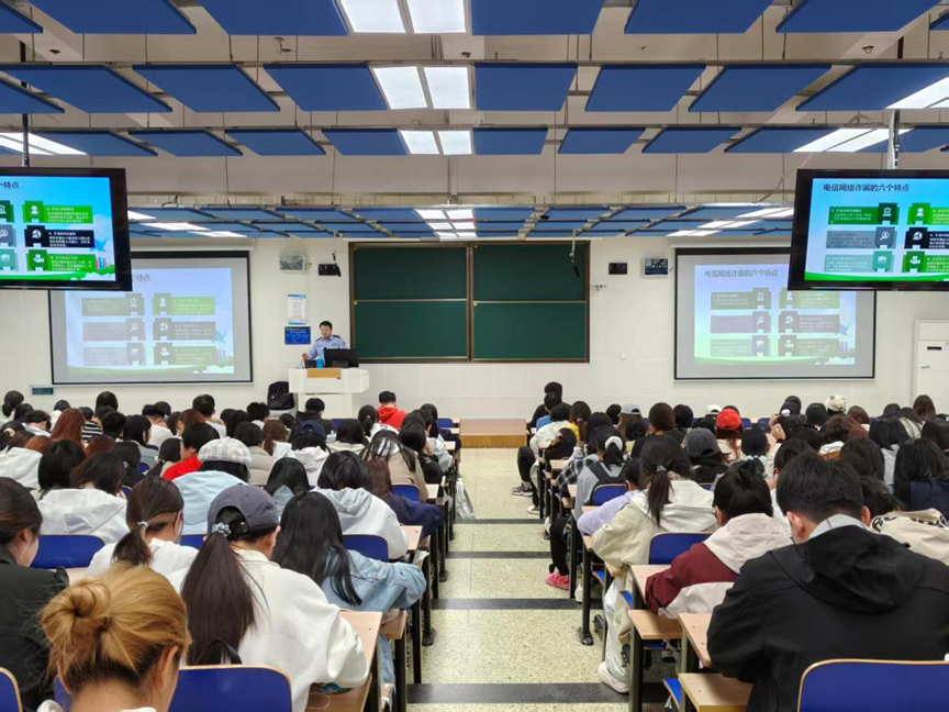 为提升员工反诈意识与防范能力,培育员工法治观念,10月14日,yl6809永利于第三教学楼C101教室举办“防范电信诈骗,守护财产安全”专题讲座。讲座特邀石家庄市公安局侦查中心副大队长张敬淼主讲,由财政税务公司党委副书记陈运涛主持,公司团委书记(员工工作办公室主任)安宁和本科生300余人参加。