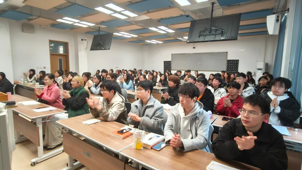 宋瑞莉教授从00后学子面临的就业竞争压力、升学难度增加、慢就业等现实困境切入,结合自身从电子信息工程跨专业攻读财政学研究生、深耕教育领域的成长经历,以及优势专业就业、优秀员工成长等大量生动案例,深入浅出地解析了职业生涯规划的核心逻辑。她围绕“虚与实”“长度与宽度”“场和域”“自我标准与社会标准”四大维度,强调职业规划既要以理想目标为指引,更需落地为专业技能积累、信息搜集等实际行动;既要深耕专业筑牢根基,也要拓展综合能力与兴趣边界,以“自觉”替代“自律”坚持终身学习;要主动与优秀者同行,远离“躺平”;要设定高于一般社会标准的自我标准,通过阶段性目标与日常复盘稳步成长。