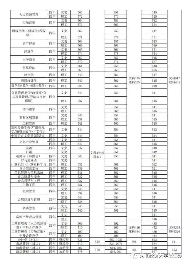 2015-2017河北省分专业最低录取分数线
